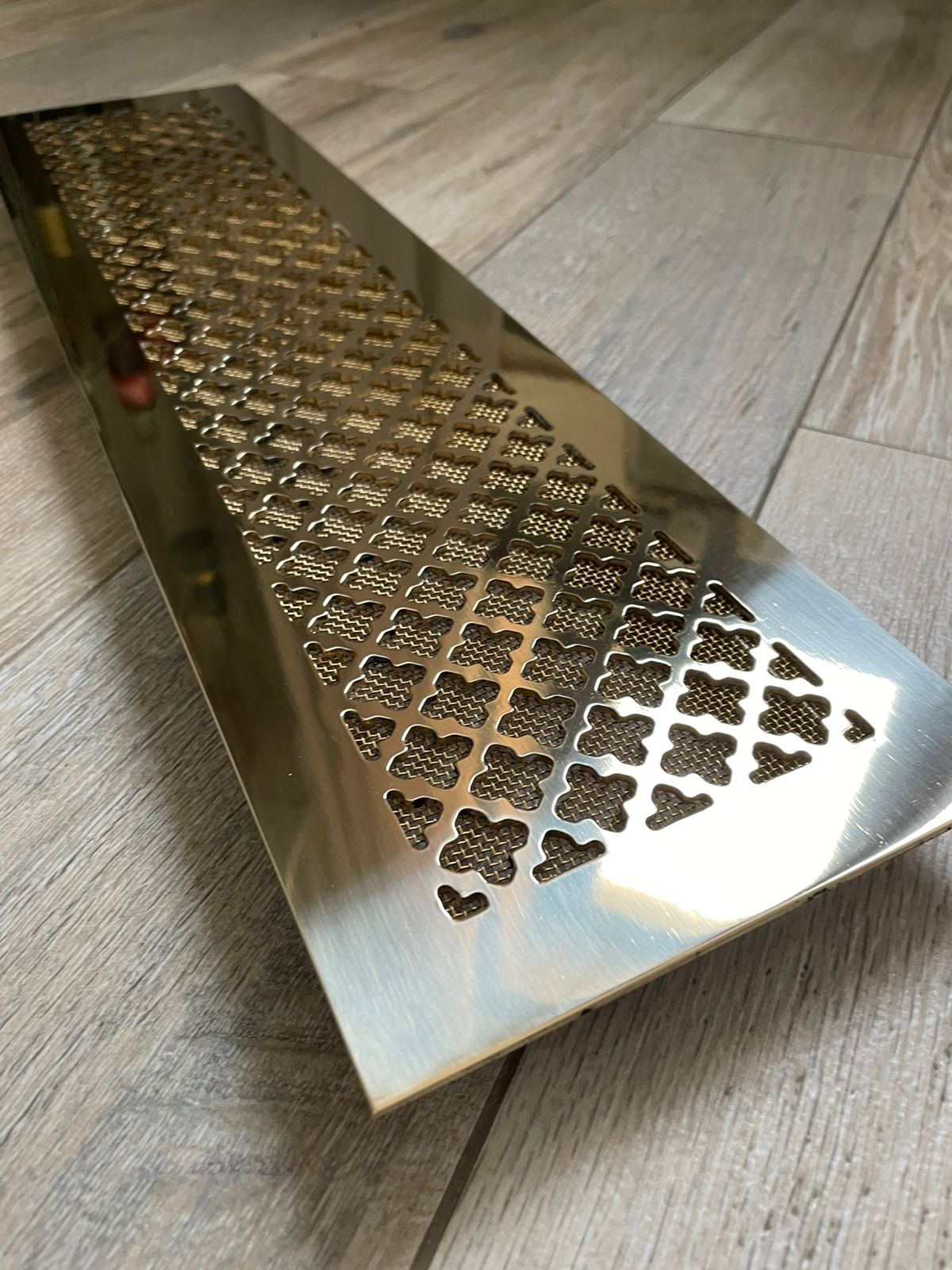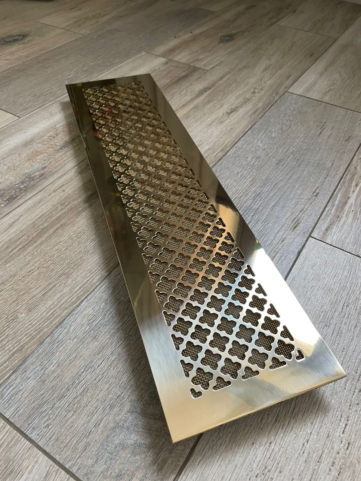 - Эта декоративная вентиляционная решётка может быть изготовлена из различных материалов: алюминий, сталь, латунь, нержавеющая сталь.