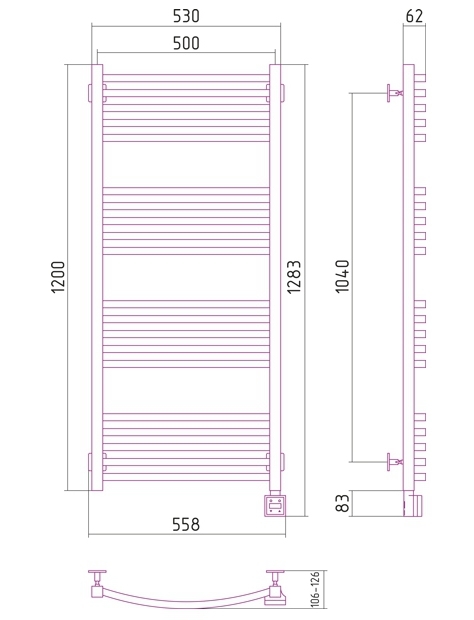 Внешние габариты (высота х ширина х глубина)(мм) : 1283x558x106-126