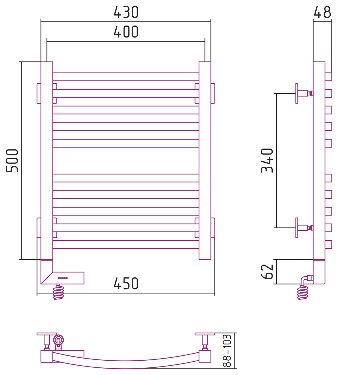 Внешние габариты (высота х ширина х глубина)(мм) : 562x450x88-103
