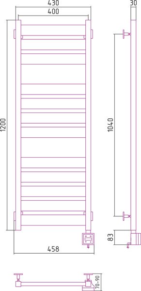 Внешние габариты (высота х ширина х глубина)(мм) : 1283х458х70-90