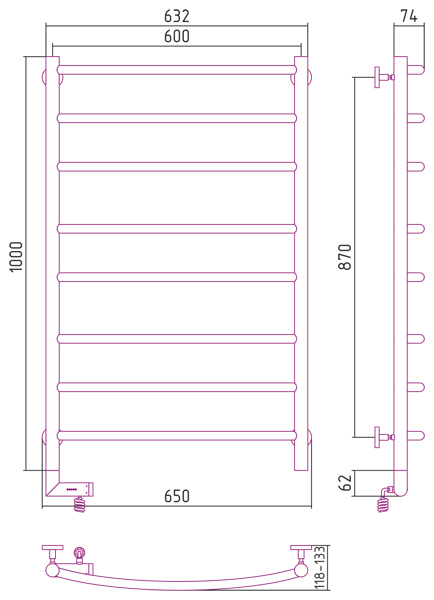 Полотенцесушитель электрический Сунержа Галант 2.0 1000x600