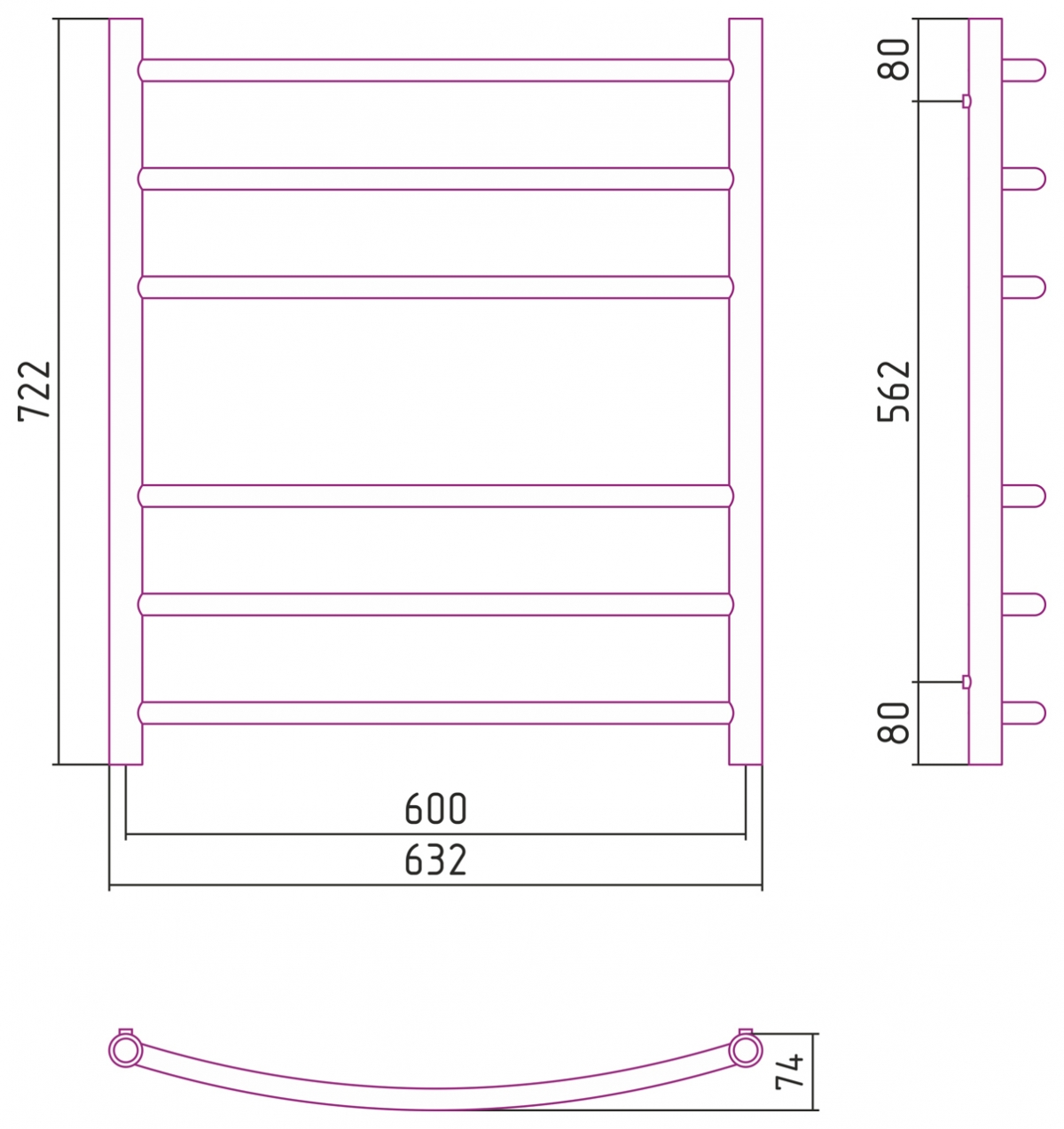 Полотенцесушитель комбинированный Сунержа Галант-ПРОФИ 800x600. 00-5100-8060