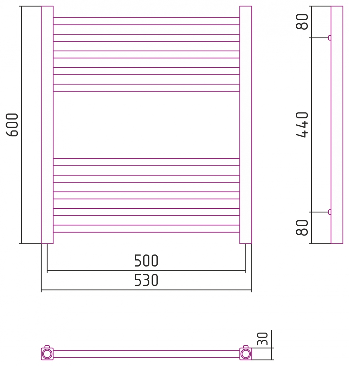 Полотенцесушитель комбинированный Сунержа Гусар-ПРОФИ 600x500