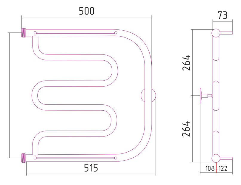 Полотенцесушитель водяной Стилье Тандем 500x500 + 2 полки