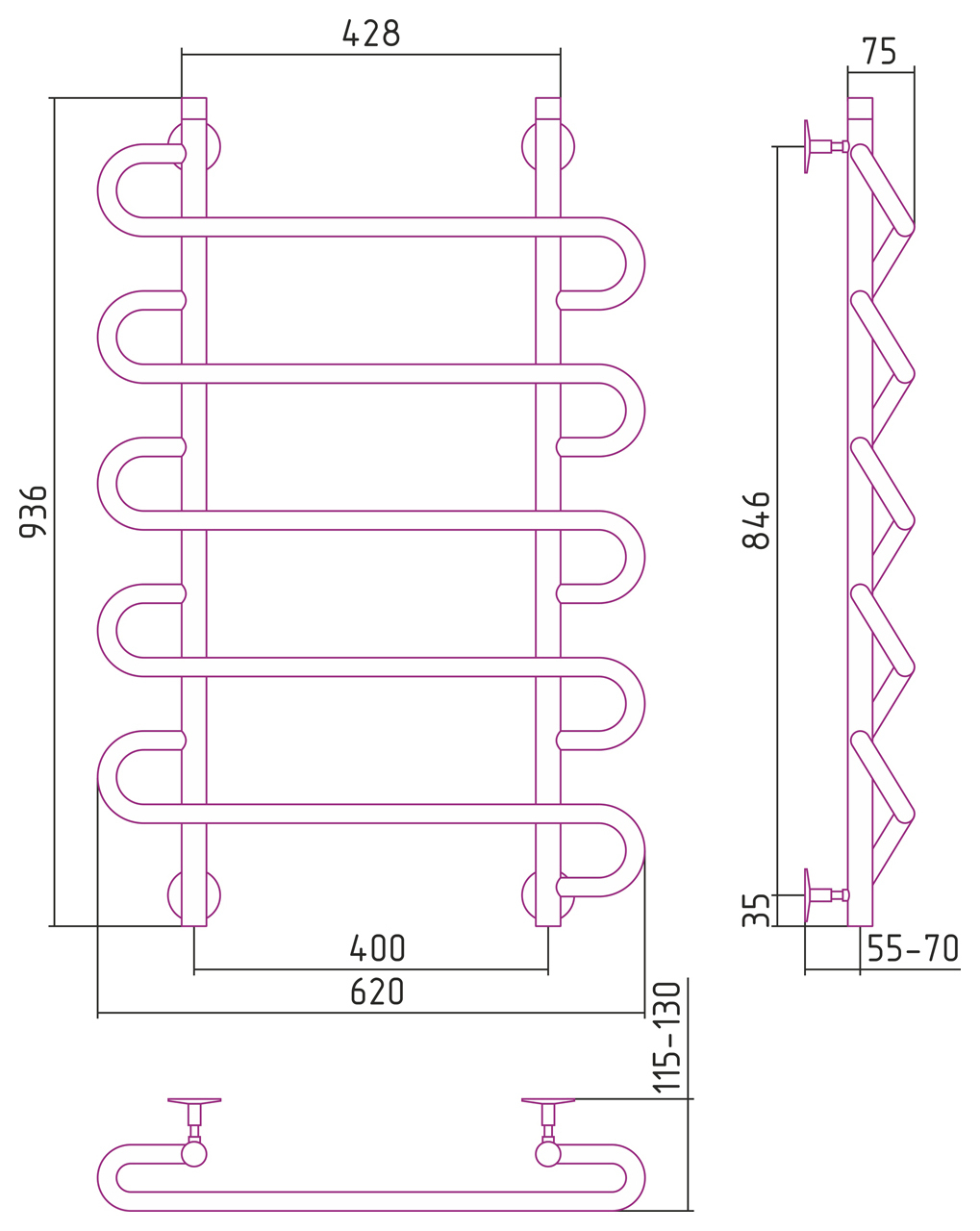 Полотенцесушитель водяной Стилье Универсал-52 1000x600