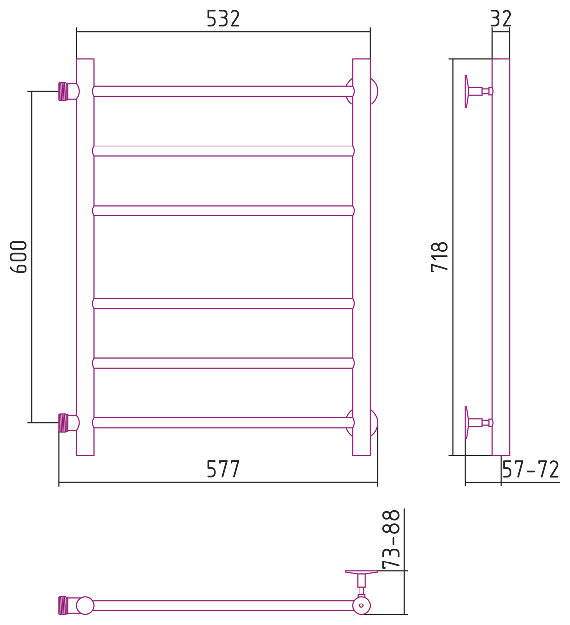 Полотенцесушитель водяной Стилье Версия-Б 600x500
