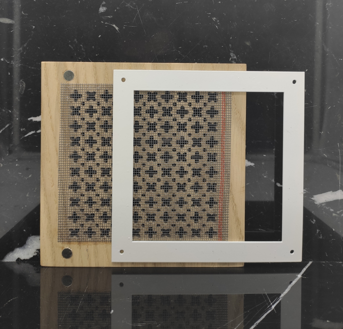 Решетка состоит из двух частей: декоративная панель со встроенными в задней части магнитами и монтажная рамка.