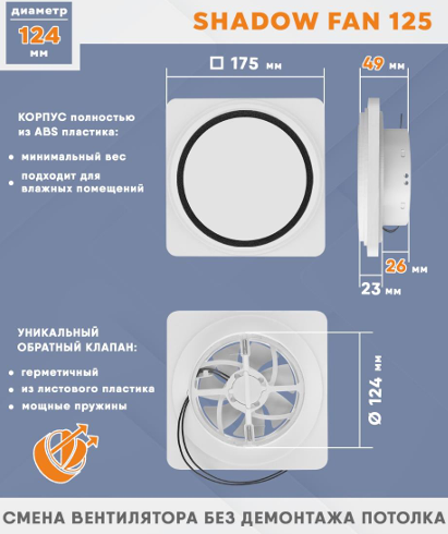 Теневой вентилятор - диффузор Technova SHADOW 125 с обратным клапаном, под натяжной потолок в интернет-магазине «ВЕНТФОМ». Заказать с доставкой! Тел.: +7 (925) 201-33-89.