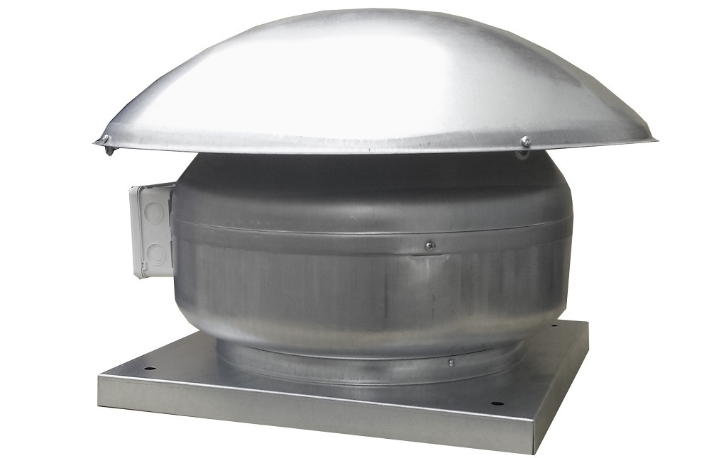 Вентилятор оборудован двигателем на шариковых подшипниках и колпаком, который защищает от попадания атмосферных осадков внутрь вентилятора и системы.