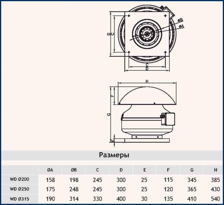 КРЫШНЫЕ ЦЕНТРОБЕЖНЫЕ ВЫТЯЖНЫЕ ВЕНТИЛЯТОРЫ WD 200